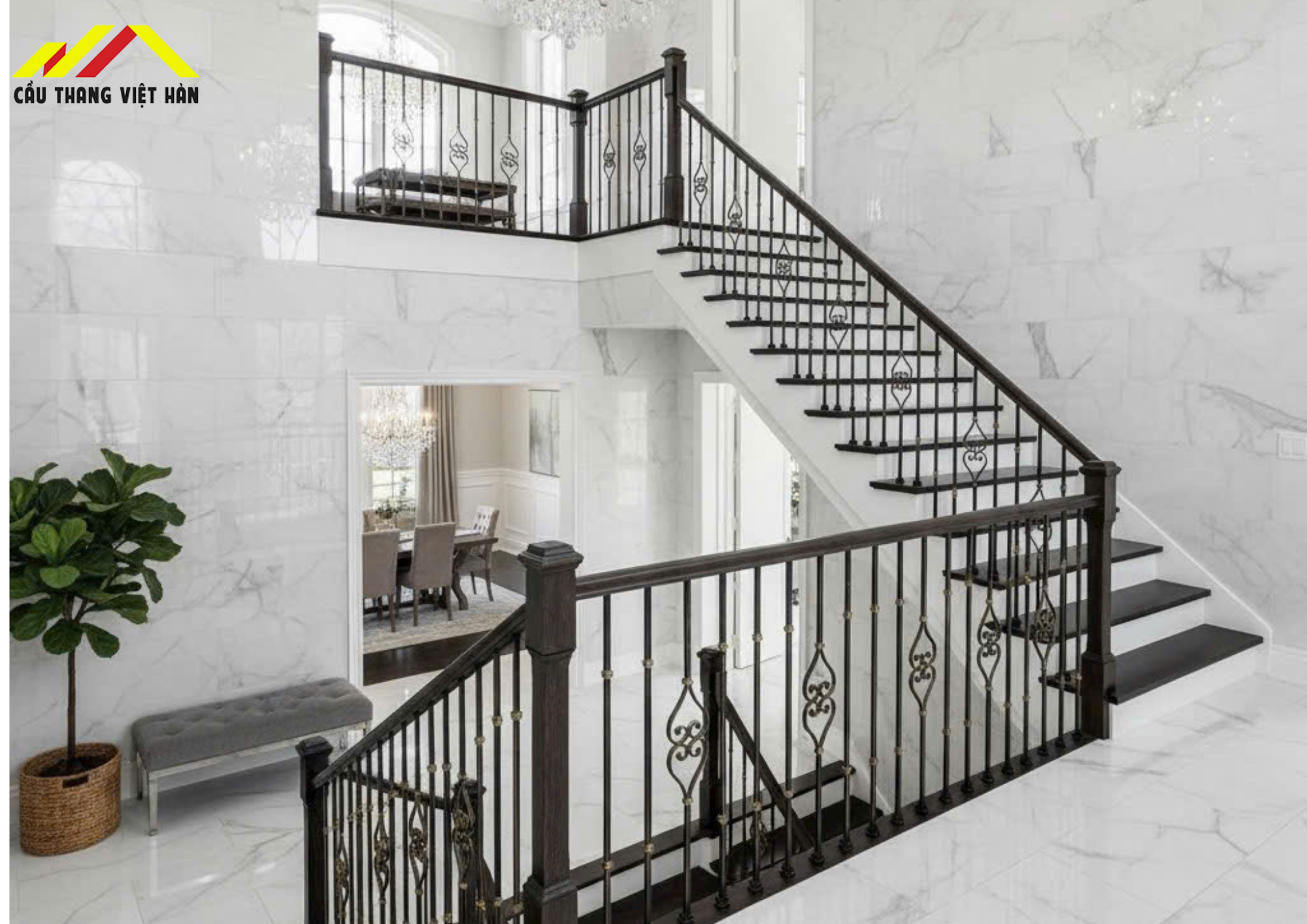 Sự Kết Hợp Hoàn Hảo Giữa Cầu Thang Gỗ Và Lan Can Sắt Nghệ Thuật